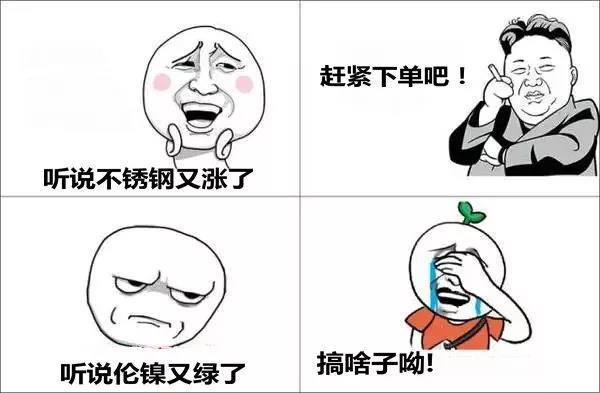 獲益于鎳價暴升影響,昨天上午跌成狗,到了下午就山窮水盡了不銹鋼板大漲了起來。要害還連漲3次,其間甬金/誠德 以200/噸起伏,上調(diào)2次,寶鋼/東特/誠德/青山以200/噸上調(diào)3次;今早無錫商場趁熱乎勁持續(xù)上調(diào),起伏在200-300/噸之間。可是到今天正午時分,跟著鎳價跌綠,304熱軋3-12mm平板理算下調(diào)100/噸!冷軋不銹鋼板成交價隨之可談,成交為主了....