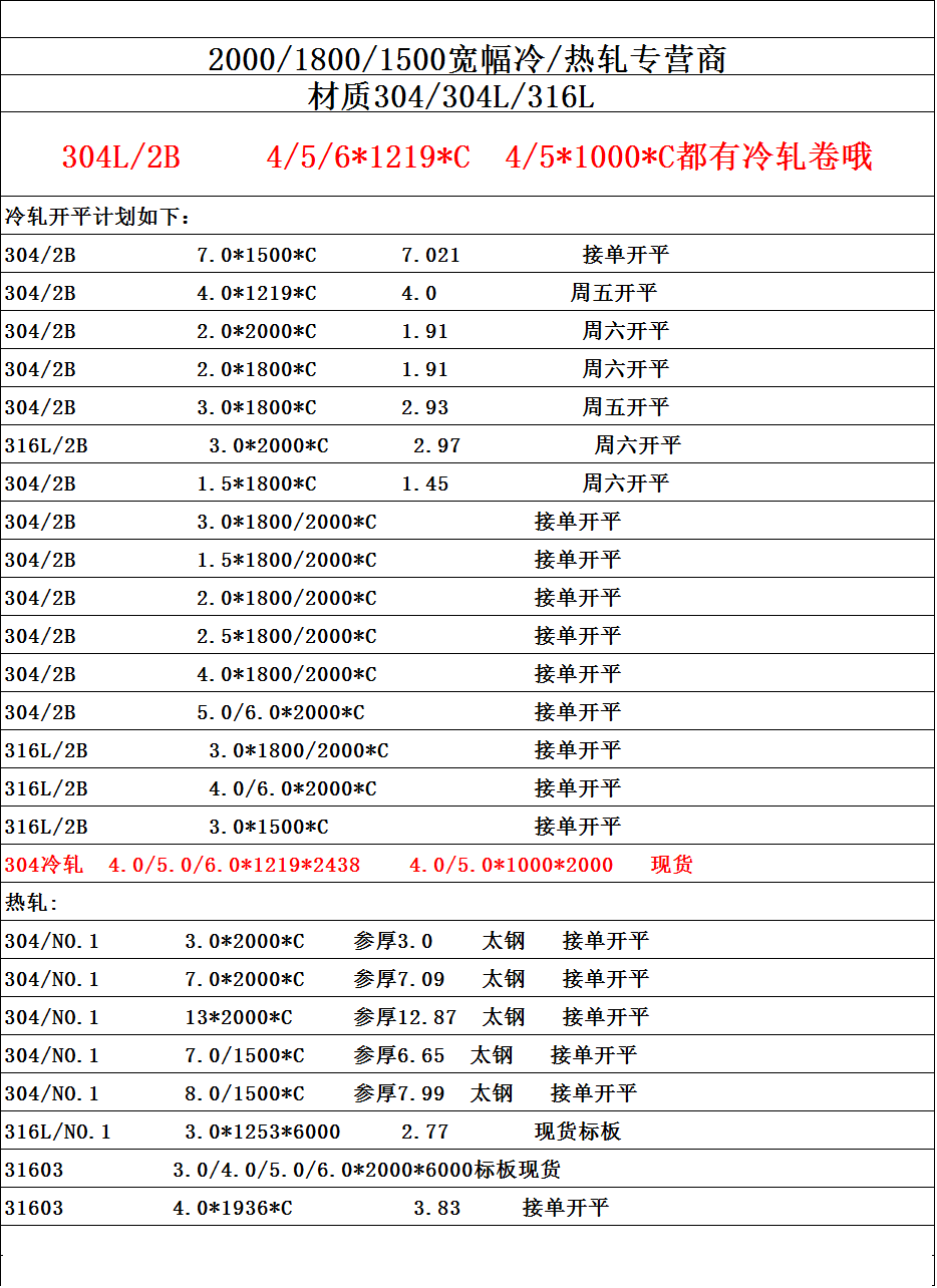特殊304寬幅不銹鋼冷熱軋